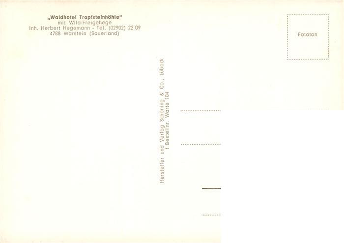 73878525 Warstein Waldhotel Tropfsteinhoehle mit Wild-Freigehege im Winter postalisch nicht gelaufen Erhaltung siehe scans [FriedD77] KatCode: 11110005974044