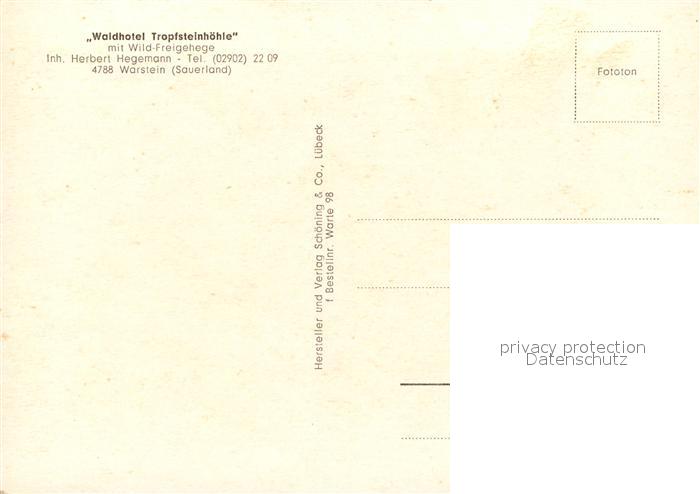 72940410 Warstein Waldhotel Tropfsteinhoehle Stolzenfels Nixengrotte postalisch nicht gelaufen Erhaltung siehe scans [NatalD47] KatCode: 11110005974044