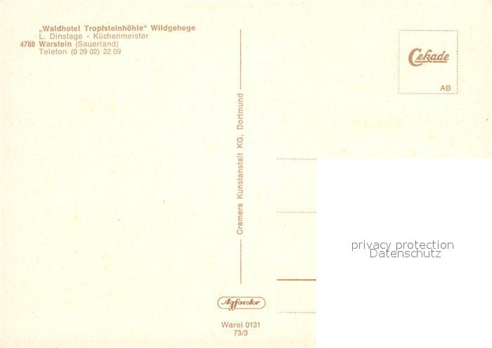 72951815 Warstein Waldhotel Tropfsteinhoehle Wildgehege postalisch nicht gelaufen Erhaltung siehe scans [PaolaD17] KatCode: 11110005974044