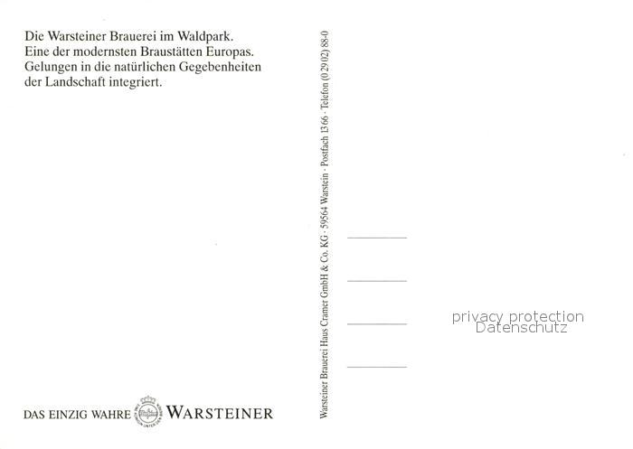 73247050 Warstein Warsteiner Brauerei im Waldpark postalisch nicht gelaufen Erhaltung siehe scans [KathaD81] KatCode: 11110005974044