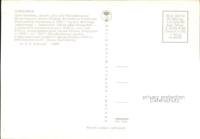 Warszawa Dom Handlowa Sezam Gmach Wydzialu Antoniego Jablonskiego Mokotowskie osiedle Sluzew Nad Dolinka postalisch nicht gelaufen Erhaltung siehe scans