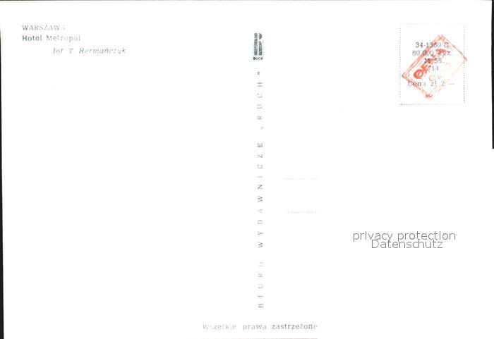 12545885 Warszawa Hotel Metropol postalisch nicht gelaufen Erhaltung siehe scans [NatalD47 cx102box] KatCode: 11410