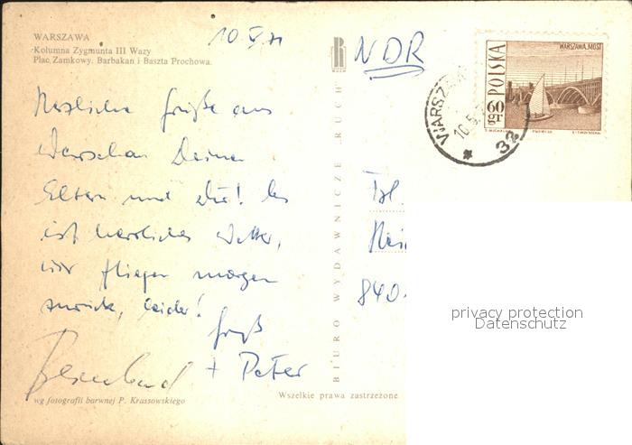 old postcard Warszawa Kolumna Zygmunta III Wazy Plac Zamkowy postalisch gelaufen Erhaltung siehe scans