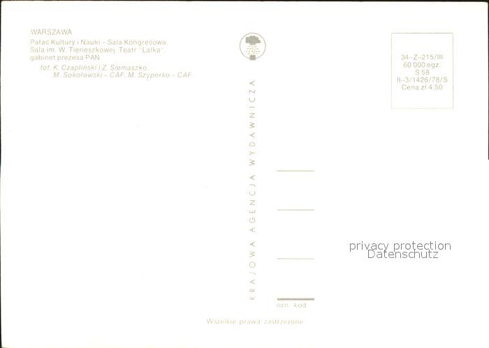 Warszawa Palac Kultury I Nauki postalisch nicht gelaufen Erhaltung siehe scans [AndreD76]