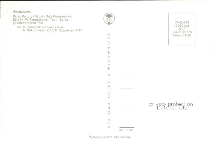 Warszawa Palac Kultury I Nauki postalisch nicht gelaufen Erhaltung siehe scans