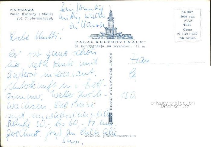 Warszawa Palac Kultury i Nauki postalisch nicht gelaufen Erhaltung siehe scans