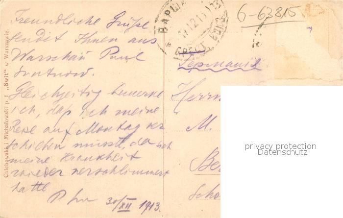 old postcard Warszawa Palais Lazienky postalisch gelaufen Erhaltung siehe scans [KathaD81]