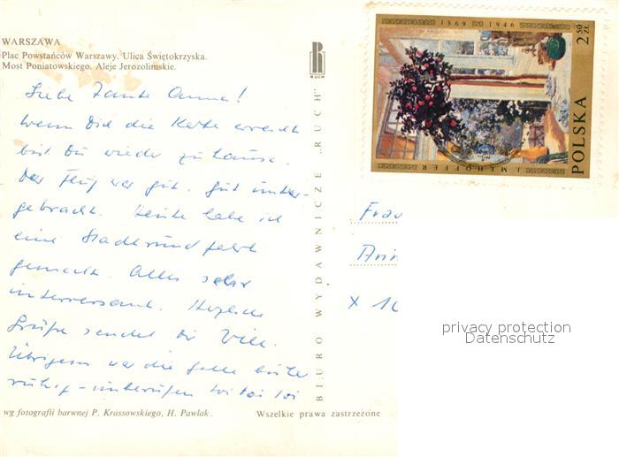 old postcard Warszawa Plac Powstaricow Swietokrzyska Most Poniatowskiego Aleje Jerozolimskie postalisch gelaufen Erhaltung siehe scans [WerneD78]