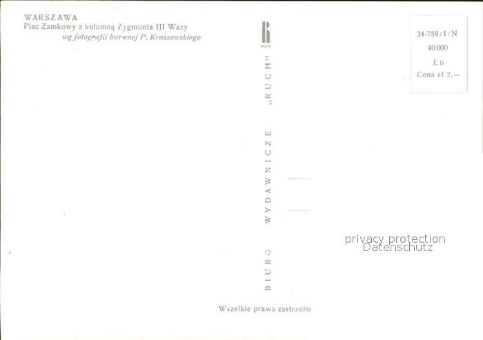 Warszawa Plac Zamkowy z kolumna Zygmunta III Wazy postalisch nicht gelaufen Erhaltung siehe scans [WerneD78]