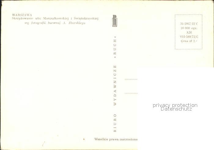 Warszawa Skrzyzowanie ulic Marszalkowkiej Swietokrzvskiej postalisch nicht gelaufen Erhaltung siehe scans