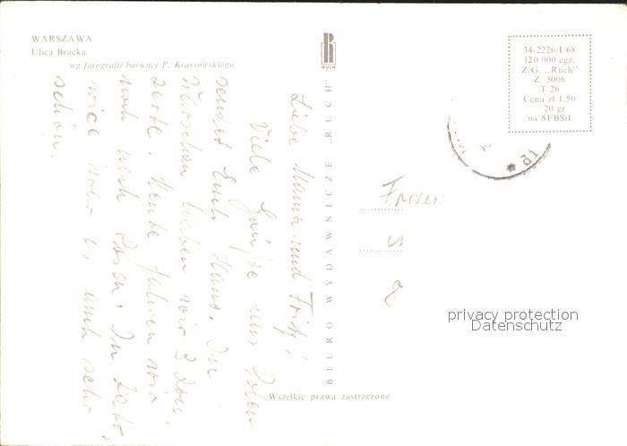 old postcard Warszawa Ulica Bracka postalisch gelaufen Erhaltung siehe scans