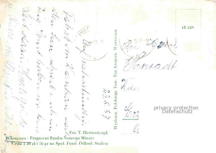 74132583 old postcard WARSZAWA Warschau PL Fragment Runku Nowego Miasta Marktplatz postalisch gelaufen Erhaltung siehe scans [FriedD77] KatCode: 11410