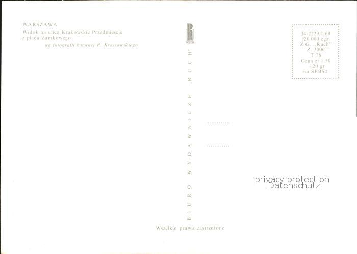 Warszawa Widok na ulice Krakowskie Przedmiescie z placu Zamkowego postalisch nicht gelaufen Erhaltung siehe scans [WerneD78]