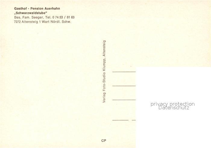 73323211 Wart Altensteig Gasthof Pension Auerhahn Schwarzwaldstube postalisch nicht gelaufen Erhaltung siehe scans [FriedD77] KatCode: 11110008235006