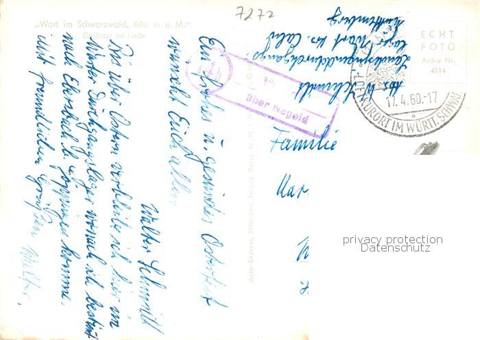 73833335 alte Postkarte Wart Altensteig Schwarzwald Fliegeraufnahme postalisch gelaufen Erhaltung siehe scans [FriedD77] KatCode: 11110008235006