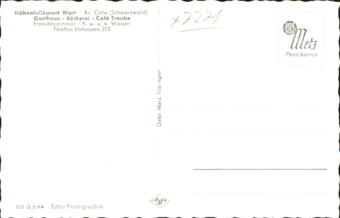 40753939 Wart Gasthaus Baeckerei Cafe Traube postalisch nicht gelaufen KatCode: