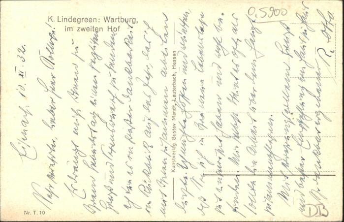 40969113 Wartburg Burg EISENACH Kuenstler K Lindgreen postalisch nicht gelaufen Alte Ansichtskarte Postkarte Katcode 11110016056000