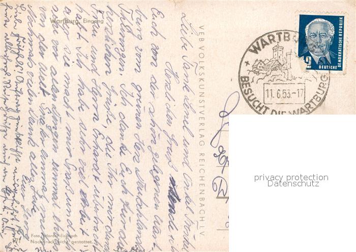 72947959 alte Postkarte Wartburg Eisenach Burg Eingang postalisch gelaufen Erhaltung siehe scans [FriedD77] KatCode: 11110016056000