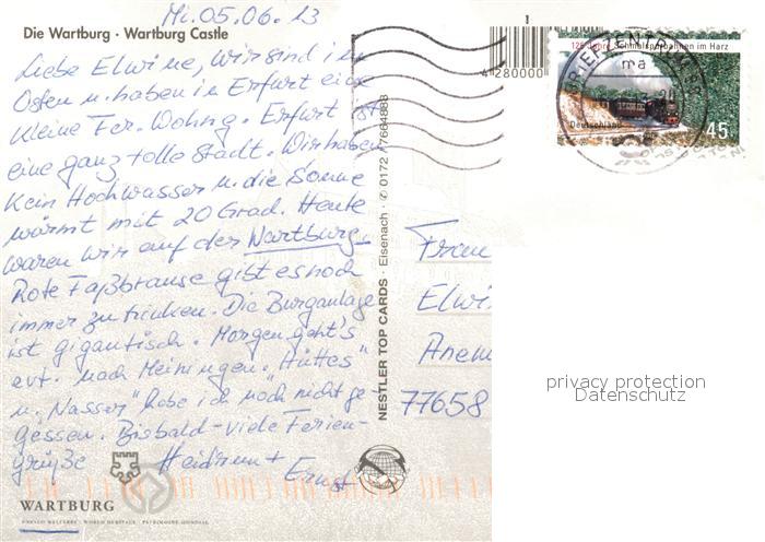 73319877 alte Postkarte Wartburg Eisenach Fliegeraufnahme postalisch gelaufen Erhaltung siehe scans [FriedD77] KatCode: 11110016056000
