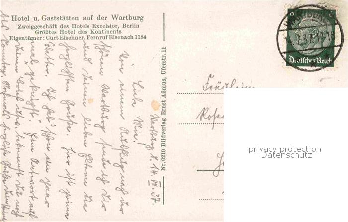 72925005 alte Postkarte Wartburg Eisenach Hotel und Gaststaetten auf der Wartburg postalisch gelaufen Erhaltung siehe scans [WerneD78] KatCode: 11110016056000