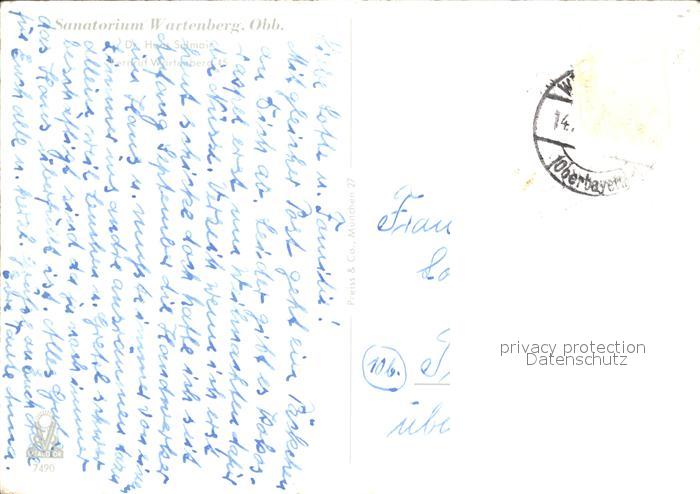 72107012 alte Postkarte Wartenberg Oberbayern Sanatorium postalisch gelaufen Erhaltung siehe scans KatCode: 11110009177143