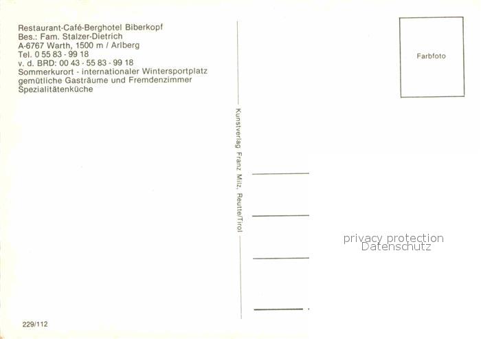 72928959 Warth Vorarlberg Berghotel Restaurant Cafe Biberkopf Ortsmotiv mit Kirche Alpen postalisch nicht gelaufen Erhaltung siehe scans [FriedD77] KatCode: 11390341080239