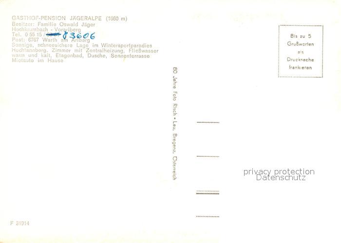 13011848 Warth Vorarlberg Gasthof Jaegeralpe postalisch nicht gelaufen Erhaltung siehe scans [NatalD47] KatCode: 11390341080239