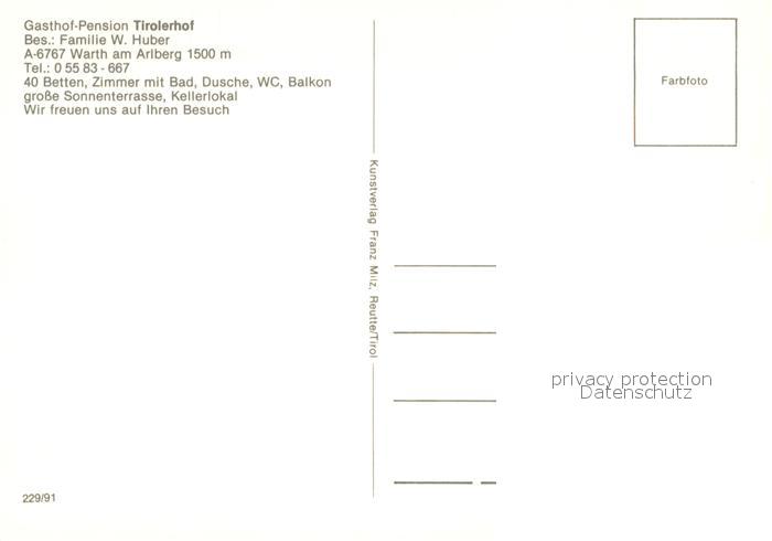 73725148 Warth Vorarlberg Gasthof Pension Tirolerhof postalisch nicht gelaufen Erhaltung siehe scans [WerneD78] KatCode: 11390341080239