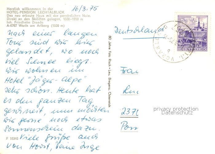 73027376 alte Postkarte Warth Vorarlberg Hotel Pension Lechtalblick Winter postalisch gelaufen Erhaltung siehe scans [KathaD81] KatCode: 11390341080239