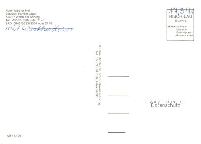 12936204 Warth Vorarlberg Hotel Warther Hof postalisch nicht gelaufen Erhaltung siehe scans [AndreD76] KatCode: 11390341080239