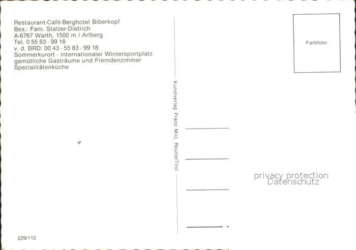 71993318 Warth Vorarlberg Restaurant Cafe Berghotel Biberkopf postalisch nicht gelaufen KatCode: 11390341080239