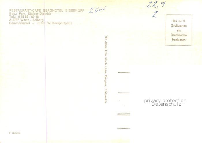 73041791 Warth Vorarlberg Restaurant Cafe Berghotel Biberkopf postalisch nicht gelaufen Erhaltung siehe scans [WerneD78] KatCode: 11390341080239