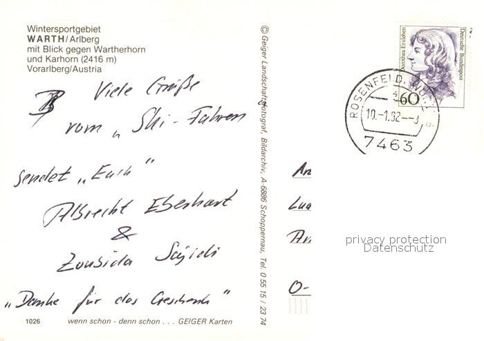 73598741 alte Postkarte Warth Vorarlberg Wartherhorn Karhorn postalisch gelaufen Erhaltung siehe scans [PaolaD17] KatCode: 11390341080239