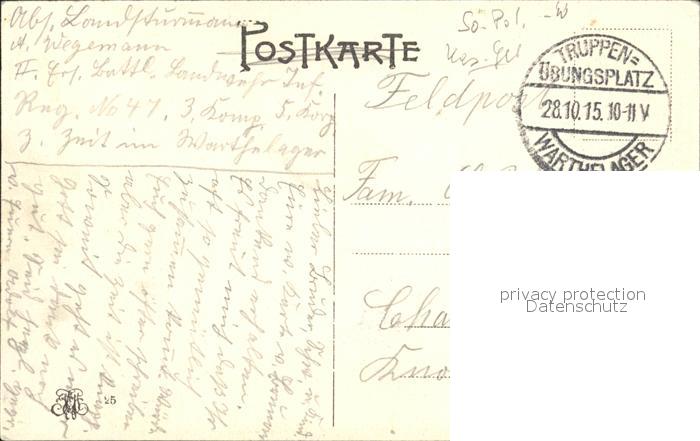 12176014 old postcard Warthelager Truppenuebungsplatz Barackenlager postalisch gelaufen Feldpost Erhaltung siehe scans KatCode: 11410