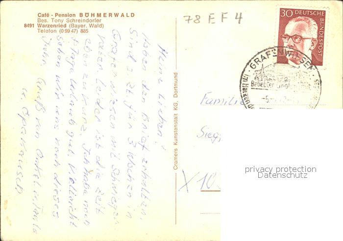 72226981 alte Postkarte Warzenried Cafe Pension Boehmerwald postalisch gelaufen Erhaltung siehe scans KatCode: 11110009372124