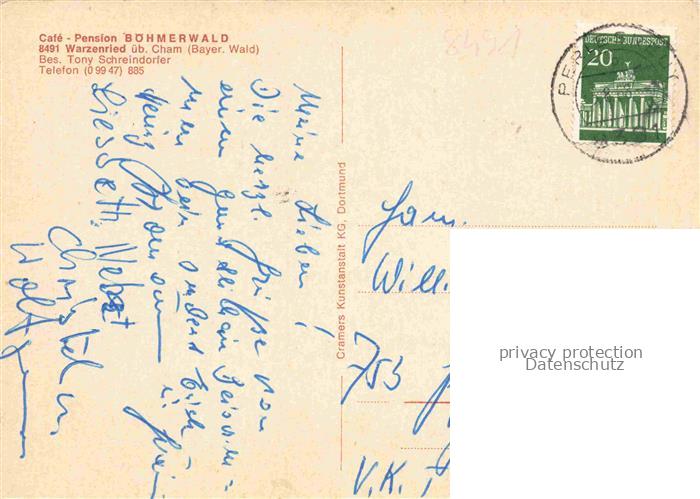74049716 alte Postkarte Warzenried Café Pension Boehmerwald postalisch gelaufen Erhaltung siehe scans [FriedD77] KatCode: 11110009372124