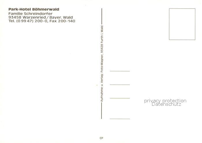73645983 Warzenried Park Hotel Boehmerwald postalisch nicht gelaufen Erhaltung siehe scans [FriedD77] KatCode: 11110009372124