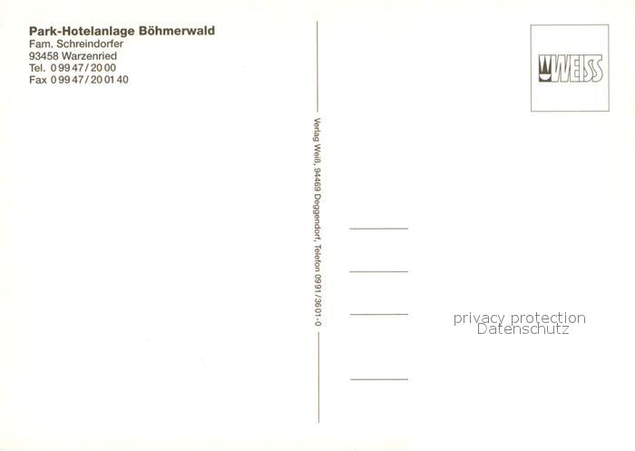 73645980 Warzenried Park Hotelanlage Boehmerwald Restaurant Wildgehege Landschaftspanorama postalisch nicht gelaufen Erhaltung siehe scans [FriedD77] KatCode: 11110009372124