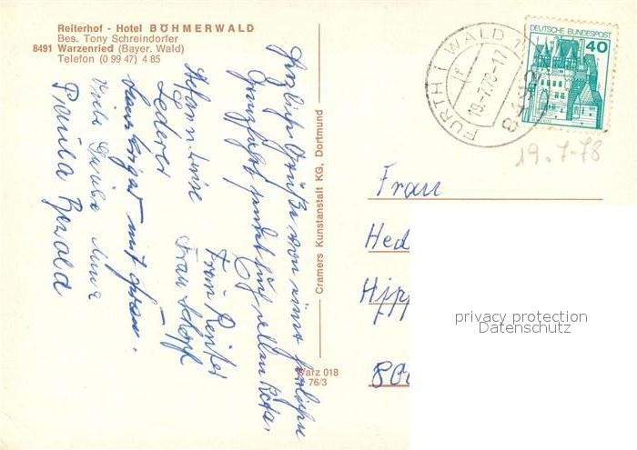 73144896 alte Postkarte Warzenried Reiterhof Hotel Boehmerwald Fliegeraufnahme postalisch gelaufen Erhaltung siehe scans [FriedD77] KatCode: 11110009372124