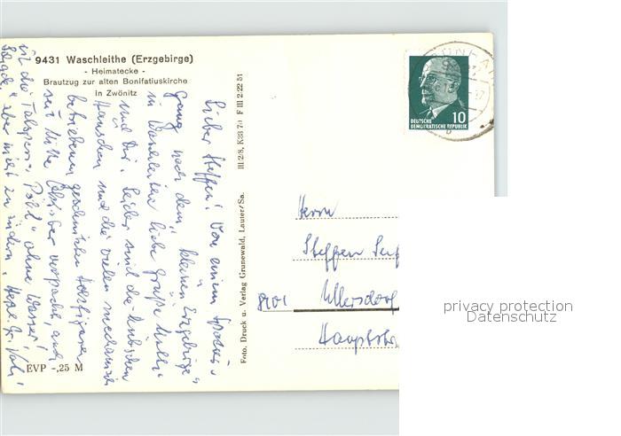 72431921 alte Postkarte Waschleithe Brautzug zur Bonifatiuskirche postalisch gelaufen Erhaltung siehe scans KatCode: 11110014191050