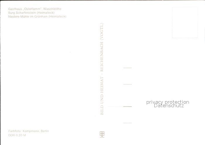72324143 Waschleithe Gasthaus Osterlamm Burg Scharfenstein Niedere Muehle im Gruenhein Heimateck postalisch nicht gelaufen Erhaltung siehe scans KatCode: 11110014191050