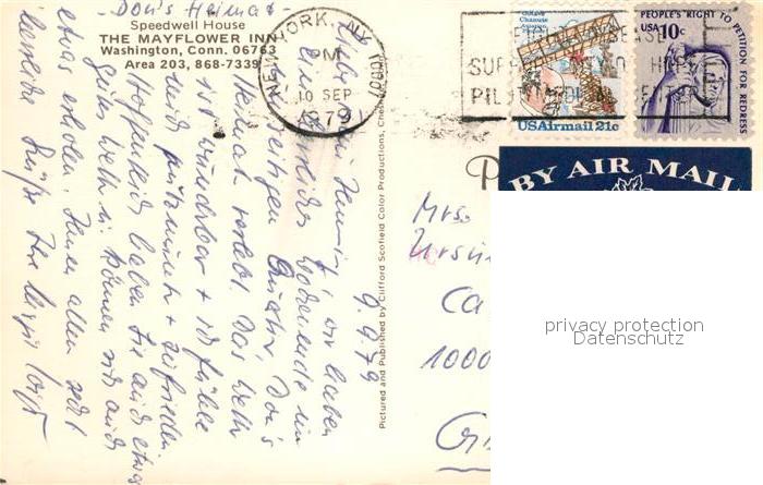 72925438 old postcard Washington Connecticut Mayflower Inn postalisch gelaufen Erhaltung siehe scans [NatalD47] KatCode: 14140070000000