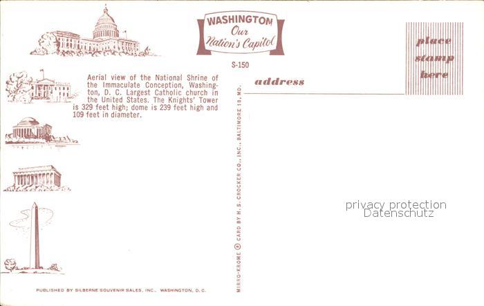 72427172 Washington DC Aerial view of the National Shrine of the Immaculate Conception postalisch nicht gelaufen Erhaltung siehe scans KatCode: 14140090000000