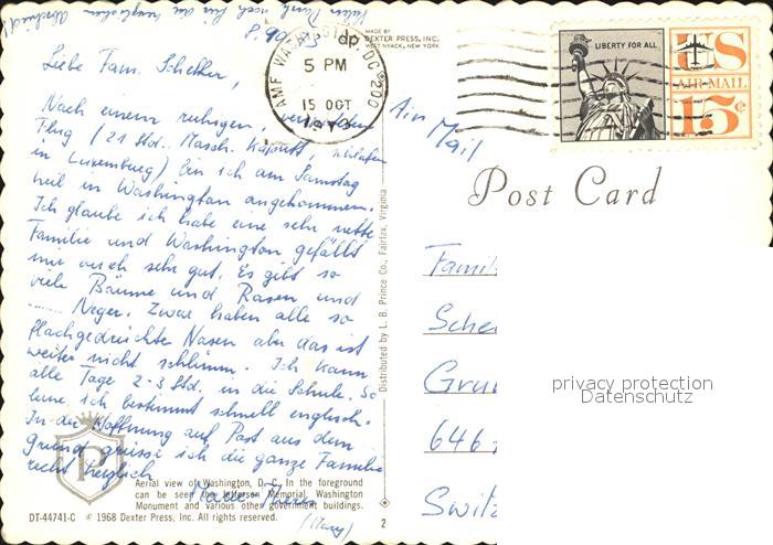 12572917 old postcard Washington DC Fliegeraufnahme postalisch gelaufen Erhaltung siehe scans [NatalD47] KatCode: 14140090000000