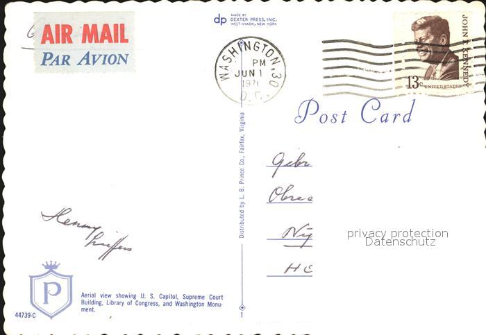 72434994 old postcard Washington DC Fliegeraufnahme postalisch gelaufen Erhaltung siehe scans KatCode: 14140090000000