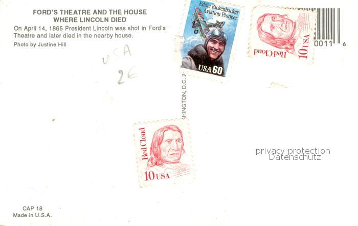 73682997 old postcard Washington DC Fords Theatre and the House where Lincoln died postalisch gelaufen Erhaltung siehe scans [WerneD78] KatCode: 14140090000000