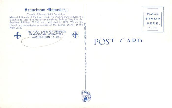 73918029 Washington DC Franciscan Monastery postalisch nicht gelaufen Erhaltung siehe scans [FriedD77] KatCode: 14140090000000