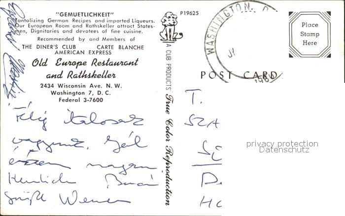 72060433 old postcard Washington DC Gemuetlichkeit Europe Restaurant Rathskeller postalisch gelaufen Erhaltung siehe scans KatCode: 14140090000000