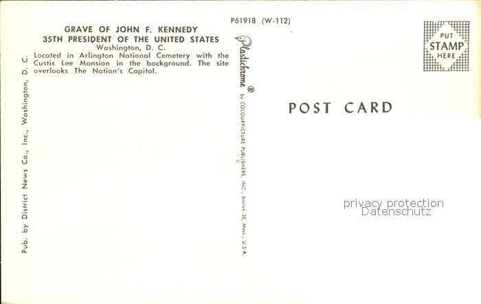 72456678 Washington DC Grab John F Kennedy postalisch nicht gelaufen Erhaltung siehe scans KatCode: 14140090000000