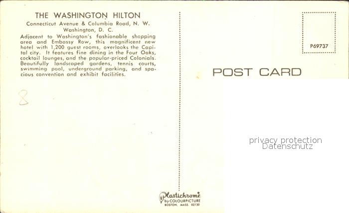 72584276 Washington DC Hilton Hotel postalisch nicht gelaufen Erhaltung siehe scans [LiesaD40] KatCode: 14140090000000